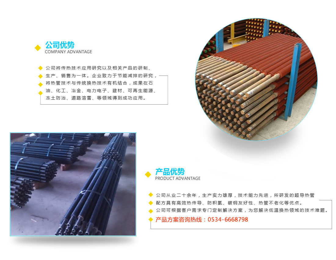 年的技術(shù)人員組建而成。公司研發(fā)的超導(dǎo)熱管配方具有高效熱傳導(dǎo)、防積氫、碳鋼友好性、熱管不老化等優(yōu)點(diǎn)。我公司可根據(jù) 客戶需求專門定制解決方案,為你解決低溫?fù)Q熱領(lǐng)域的技術(shù)難題。 公司擁有高頻焊接生產(chǎn)線、高標(biāo)準(zhǔn)自動清洗線、氬弧自動管焊接、全套金屬成型機(jī)、主要生產(chǎn)翅片管,翅片熱管,鋼鋁復(fù)合管,熱管式空氣預(yù)熱器,石化配件,公司設(shè)有獨(dú)立的中心實(shí)驗(yàn)室,配備完善的熱性能總 和檢測設(shè)備 與設(shè)施,為配套產(chǎn)品進(jìn)行設(shè)計和研發(fā)提供了堅實(shí)保障。 公司以科學(xué)的生產(chǎn)工藝、嚴(yán)格的質(zhì)量管理、先進(jìn)的服務(wù)理念、合理的產(chǎn)品價格,在國內(nèi)外廣大用戶中贏得了良好的聲譽(yù),深受國內(nèi)外廣大客戶的信賴。 ![]() |